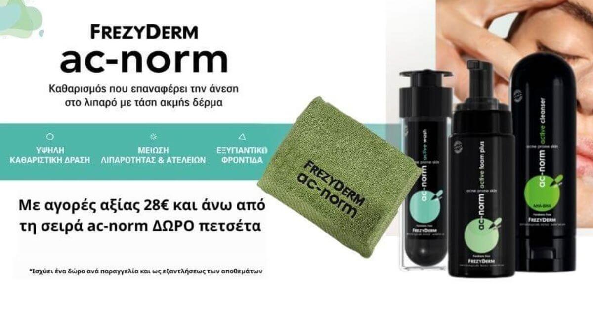 Frezyderm: Με αγορές προϊόντων Ac-norm αξίας 28€ και άνω ΔΩΡΟ Πετσέτα Προσώπου
