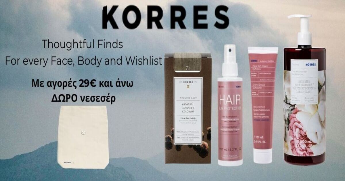 Korres: Με αγορές προϊόντων αξίας 29€ και άνω ΔΩΡΟ Νεσεσέρ
